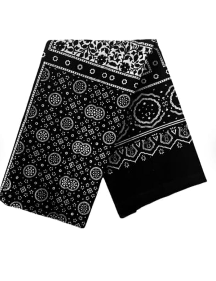 • Features: Elegant traditional “Madani” or Ajrak style pattern in classic black and white. Perfect as a neck scarf or shoulder wrap. Lightweight and breathable for year-round comfort. Size: 1.80 meters.