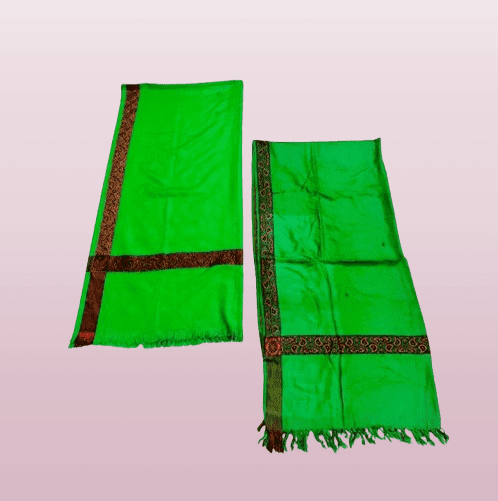 This exquisite green long scarf, often referred to as a Sorban or Chadar, is crafted in the traditional Kashmiri/Yemeni Haba’ib style. It is specifically designed to be versatile, serving as a handsome men’s shawl, a protective muffler, or wrapped as a classic Imamah (Turban). The beautiful green color holds significant cultural and religious reverence.